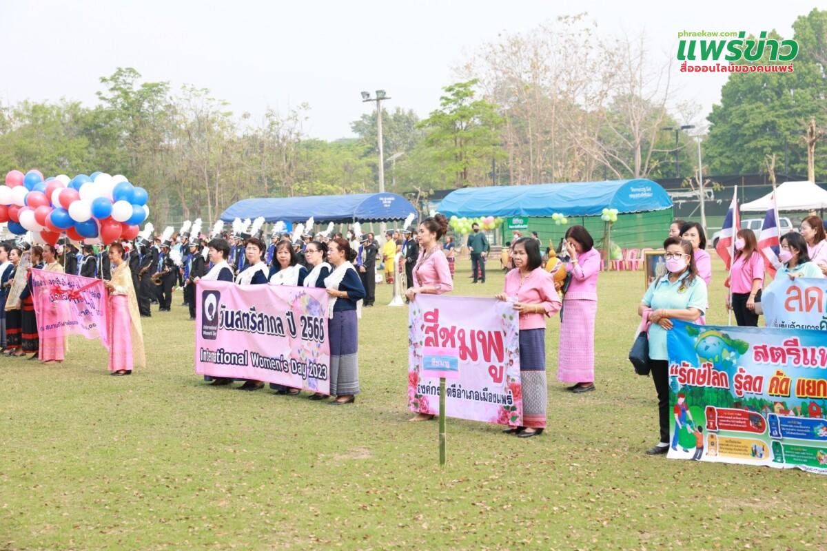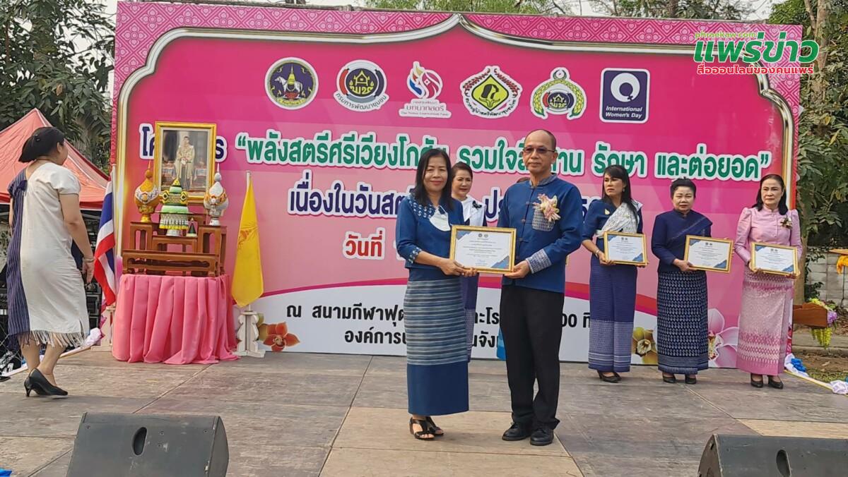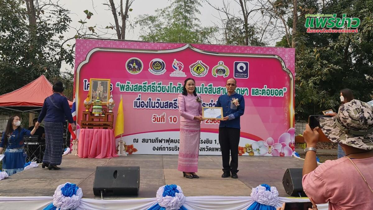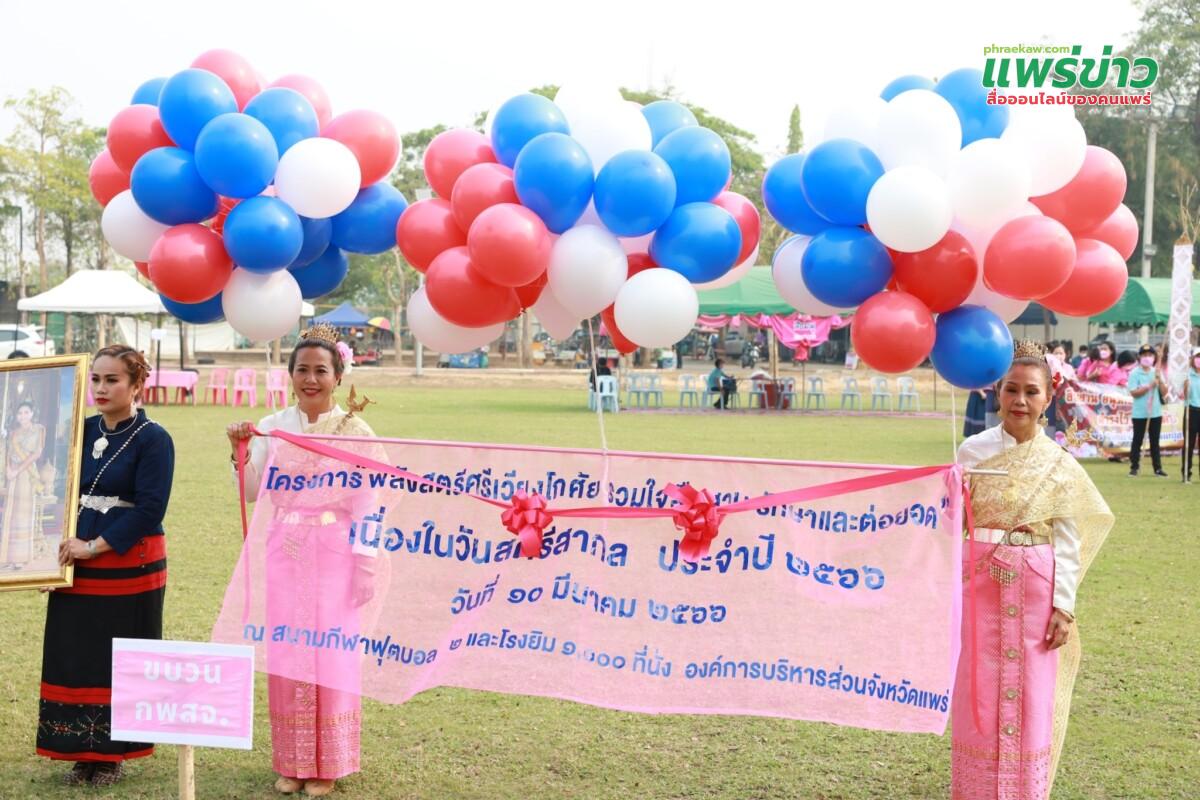 คณะกรรมการพัฒนาสตรีจังหวัดแพร่ ร่วมกับ สำนักงานพัฒนาชุมชน จังหวัดแพร่ ได้ดำเนินโครงการ “พลังสตรีศรีเวียงโกศัย รวมใจสืบสาน รักษา และ ต่อยอด เนื่องในวันสตรีสากล ปี 2566” เพื่อส่งเสริมการพัฒนาเครือข่ายองค์กรสตรีจังหวัดแพร่ ให้มีความเข้มแข็ง ส่งเสริมบทบาทของสตรีในการส่งเสริมและอนุรักษ์ผ้าไทย ผ้าพื้นถิ่นให้เป็นที่รู้จักในวงกว้าง ส่งเสริมการพัฒนาศักยภาพการเป็นภาวะผู้นำ พัฒนาทักษะการส่งเสริมอาชีพ การพัฒนาเศรษฐกิจ เป็นแกนนำหลักในการพัฒนาชุมชน และส่งเสริมการพัฒนาคุณภาพชีวิตของสตรี และเสริมสร้างสุขภาพ มีผู้เข้าร่วมกิจกรรมเป็นผู้นำสตรี ทั้งหมด 8 อำเภอ รวมกว่า 500 คน ร่วมแสดงพลังของสตรี โดยการการรณรงค์การสวมใส่ผ้าไทย,การจัดแสดงนิทรรศการผลงานองค์กรสตรีการดำเนินงานกองทุนพัฒนาบทบาทสตรีการสาธิตและจำหน่ายสินค้ากลุ่มอาชีพกองทุนพัฒนาบทบาทสตรี,การแข่งขันการทำอาหาร “สตรีมีรักปลูกผักทำครัว”, การแข่งขันกีฬาพื้นบ้าน และการแข่งขันกองเชียร์ “สตรีรักษ์โลก รู้ลด คัดแยก ขยะ”