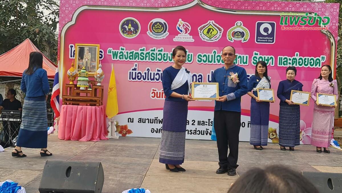 นางอัมราพร มุ้งทอง ประธานคณะกรรมการพัฒนาสตรีจังหวัดแพร่ กล่าวรายงานว่า ด้วยวันที่ 8 มีนาคมของทุกปี ถือเป็นวันสตรีสากล (InternationalWomen’ Day) ซึ่งเป็นวันที่สตรีทั่วโลกร่วมเฉลิมฉลองความเสมอภาคที่ได้รับมาและเป็นการแสดงให้เห็นถึงความเท่าเทียมกันในสังคม ประเทศไทยซึ่งเป็นหนึ่งในสมาชิกขององค์การสหประชาชาติ ได้แสดงเจตนารมณ์ที่จะมุ่งให้เห็นความสำคัญของสุภาพสตรีและได้ส่งเสริมและสนับสนุนให้สตรีทุกคน ได้ระลึกถึงความเป็นมาแห่งการต่อสู้เพื่อให้ได้มาซึ่งความเสมอภาค ยุติธรรม สันติภาพ และการพัฒนาซึ่งกรมการพัฒนาชุมชนเป็นหนึ่งในหน่วยงานที่มีภารกิจในการส่งเสริม สนับสนุนการพัฒนาศักยภาพของสตรี ได้กำหนดให้จัดกิจกรรมเพื่อเผยแพร่ประชาสัมพันธ์ให้ประชาชนรู้จักเห็นวันสำคัญของวันสตรีสากล