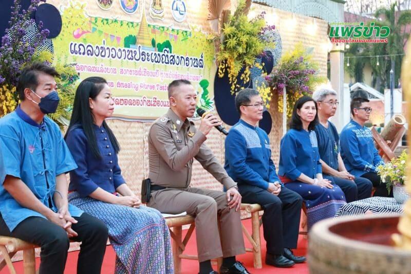 เมื่อเวลา 17.30 น. วันที่ 30 มี.ค.66 ณ บริเวณ กาดสามวัย เทศบาลเมืองแพร่ จัดการแถลงข่าว งานประเพณีสงกรานต์ “ดอกลมแล้งบาน สงกรานต์เมืองแป้ นุ่งหม้อ ห้อมแต้งามตา” ประจำปี 2566 และงาน Amazing Phrae Taste Festival “สุดยอดของกินเมืองแพร่” ระหว่างวันที่ 13-17 เมษายน 2566 โดยมี นายชุติเดช มีจันทร์ ผู้ว่าราชการจังหวัดแพร่ และ นางณัชชา มีจันทร์ นายกเหล่ากาชาดจังหวัดแพร่ นายโชคชัย พนมขวัญ นายกเทศมนตรีเมืองแพร่ นายเจตนิพิฐ หล้าประเสริฐ ปลัดเทศบาลเมืองแพร่ พล.ต.ต.ณัฐวุฒิ ภาคภูมิ ผบก.ภ.จว.แพร่ นางสาวภทรพรรณ นรเดชานันท์ นักวิชาการวัฒนธรรมชำนาญการ ตัวแทนวัฒนธรรมจังหวัดแพร่ นายอนันต์ สีแดง ผอ.ททท.สนง.แพร่ ร่วมแถลงข่าว โดยมี นางสาวนพมาศ อินจันทร์ หัวหน้าสำนักปลัดเทศบาลเมืองแพร่ เป็นพิธีกรโดยมีหัวหน้าส่วนราชการ และสื่อมวลชนทุกแขนงเข้าร่วมอย่างคับคั่ง