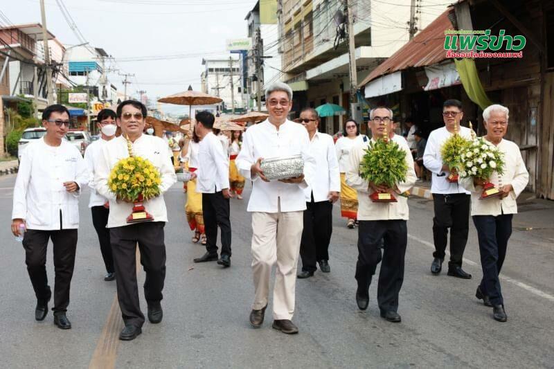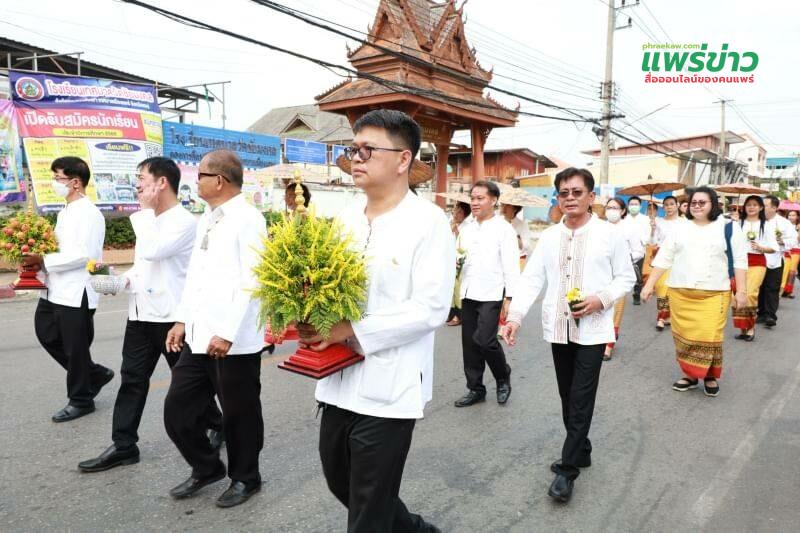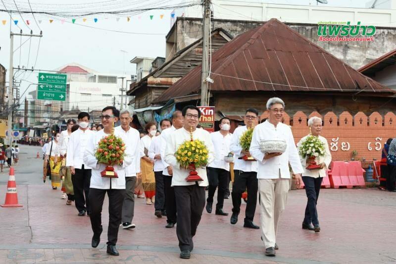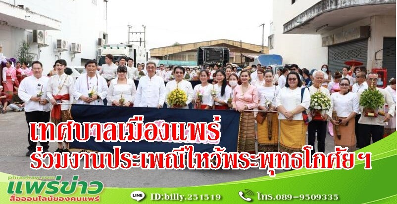วันอาทิตย์ที่ 28 พฤษภาคม 2566 เวลา 15.00 น. นายโชคชัย พนมขวัญ นายกเทศมนตรีเมืองแพร่ พร้อมด้วยคณะผู้บริหาร สมาชิกสภาเทศบาลเมืองแพร่ รองปลัดเทศบาลเมืองแพร่ หัวหน้าส่วนราชการ ผู้บริหารสถานศึกษาและคณะครูในสังกัดเทศบาลเมืองแพร่ พนักงานเทศบาล และตัวแทนประชาชนจาก 18 ชุมชนในเขตเทศบาลเมืองแพร่ ร่วมเดินขบวนสักการะหลวงพ่อพุทธโกศัยศิริชัยมหาศากยมุนีและฟ้อนขันดอก ในงานประเพณีไหว้พระพุทธโกศัยศิริชัยมหาศากยมุนี พระคู่บ้านคู่เมืองแพร่ และงานส่งเสริมพระพุทธศาสนาเนื่องในเทศกาลวันวิสาขบูชา ประจำปี 2566