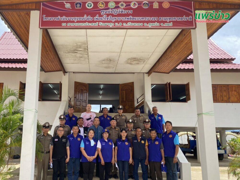 โดยมี พ.ต.อ.บุญเทียม ฮาวบุญปั๋น รอง ผบก.ภ.จว.แพร่, พ.ต.อ.กฤษฏิ์ชีระ วิริยะเสรี รอง ผบก.ฯ ปรก.ภ.จว.แพร่, พ.ต.อ.ภูชิชย์ ตรียัมปราย ผกก.สภ.สูงเม่น,พ.ต.ท.กัณฑ์สิทธิ์ คงต่อ สวป.ฯ ผู้มีส่วนเกี่ยวข้องในโครงการฯ ร่วมกิจกรรมในครั้งนี้ด้วย ณ บ้านผาสุก หมู่ที่ 8 ตำบลเวียงทอง อำเภอสูงเม่น จังหวัดแพร่