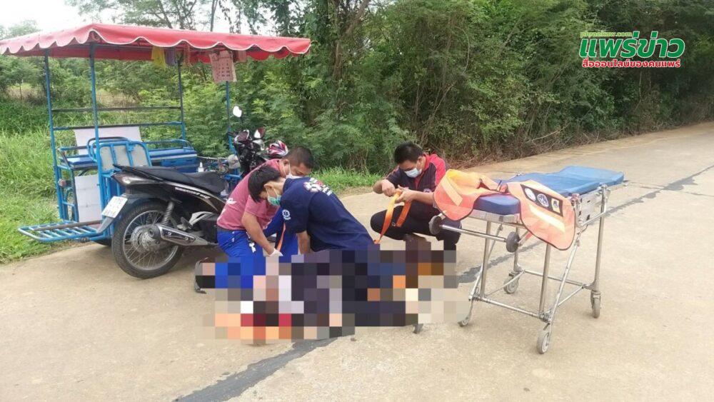 ต่อมาทราบจากชาวบ้านระแวกนั้นและผู้ผ่านทาง ตามคนชาวบ้านเรียกกัน ทราบชื่อ ลุงเร่ง อายุประมาณ 60 กว่า เป็นคนบ้านค่างาม ต.ดอนมูล อ.สูงเม่น จ.แพร่ ที่มาทำนาบริเวณนี้จำนวนหลายสิบไร่ เบื้องต้นคาดว่า ระหว่างที่ขี่รถ จยย.พ่วงข้าง มาดูนา แล้วเกิดอาการโรคประจำตัวกำเริบ จึงหมดสติลง ระหว่างที่นั่งควบรถ จนกระทั่งฟันปลอมหลุดออกตจากปาก ตกอยู่บนพื้น และระหว่างเกิดเหตุไม่มีใครเห็นประกอบกับ ท่าหมดสติ เหมือนคนนอนควบรถ จยย. ธรรมดา จึงไม่มีใครสะกิดใจว่าหมดสติ