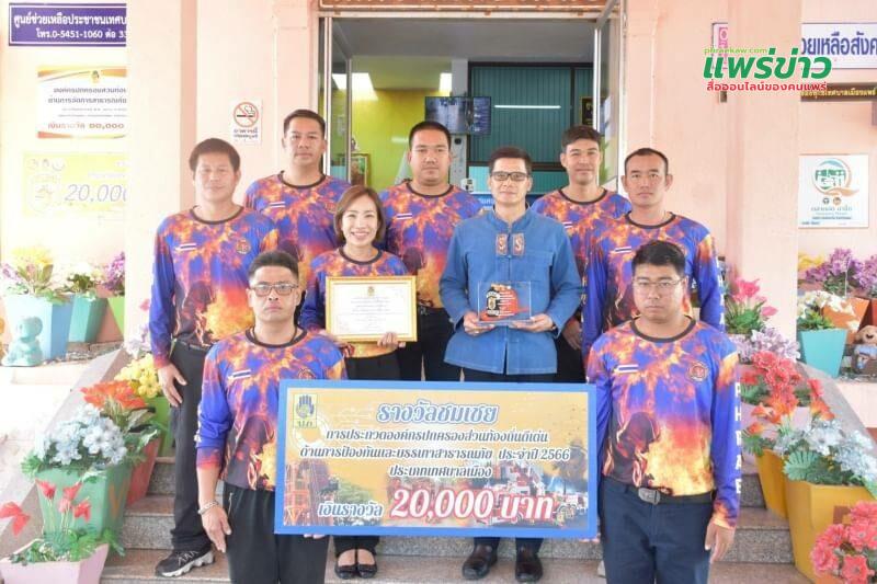 วันพฤหัสบดีที่ 29 มิถุนายน 2566 เวลา 10.00 น. นายโชคชัย พนมขวัญ นายกเทศมนตรีเมืองแพร่ พร้อมด้วยนางสาวนพมาศ อินจันทร์ หัวหน้าสำนักปลัดเทศบาล และเจ้าหน้าที่งานป้องกันและบรรเทาสาธารณภัยเทศบาลเมืองแพร่ เข้ารับมอบโล่รางวัลและประกาศเกียรติคุณองค์กรปกครองส่วนท้องถิ่นดีเด่นด้านการป้องกันและบรรเทาสาธารณภัย ระดับประเทศ ประจำปี 2566 และการแข่งขันทักษะการกู้ภัยขององค์กรปกครองส่วนท้องถิ่น รอบพิเศษ ประเภทเทศบาลเมือง โดยได้รับรางวัลชมเชยและเงินรางวัลจำนวน 20,000 บาท จากกรมป้องกันและบรรเทาสาธารณภัย โดยมีนายชุติเดช มีจันทร์ ผู้ว่าราชการจังหวัดแพร่ เป็นประธานมอบโล่รางวัลและประกาศเกียรติคุณฯ ณ ห้องประชุมจดหมายเหตุ ชั้น 2 ศาลากลางจังหวัดแพร่ โอกาสนี้นายเจตนิพิฐ หล้าประเสริฐ ปลัดเทศบาลเมืองแพร่ ร่วมแสดงความยินดีในการเข้ารับรางวัลดังกล่าว ณ บริเวณอาคารสำนักงานเทศบาลเมืองแพร่ ตำบลในเวียง อำเภอเมืองแพร่ จังหวัดแพร่