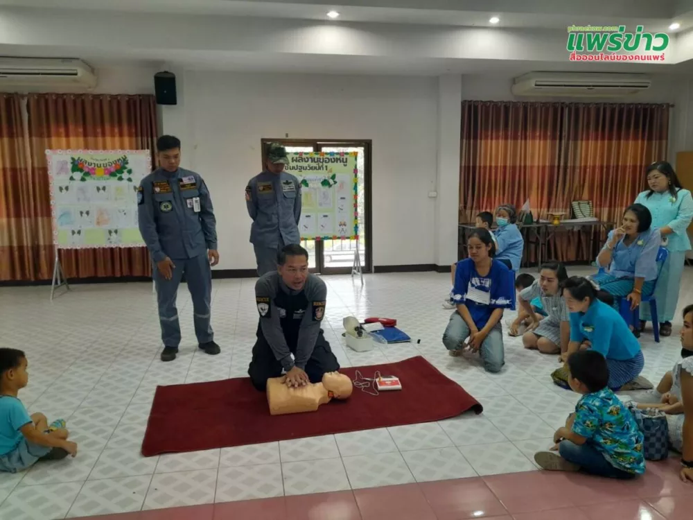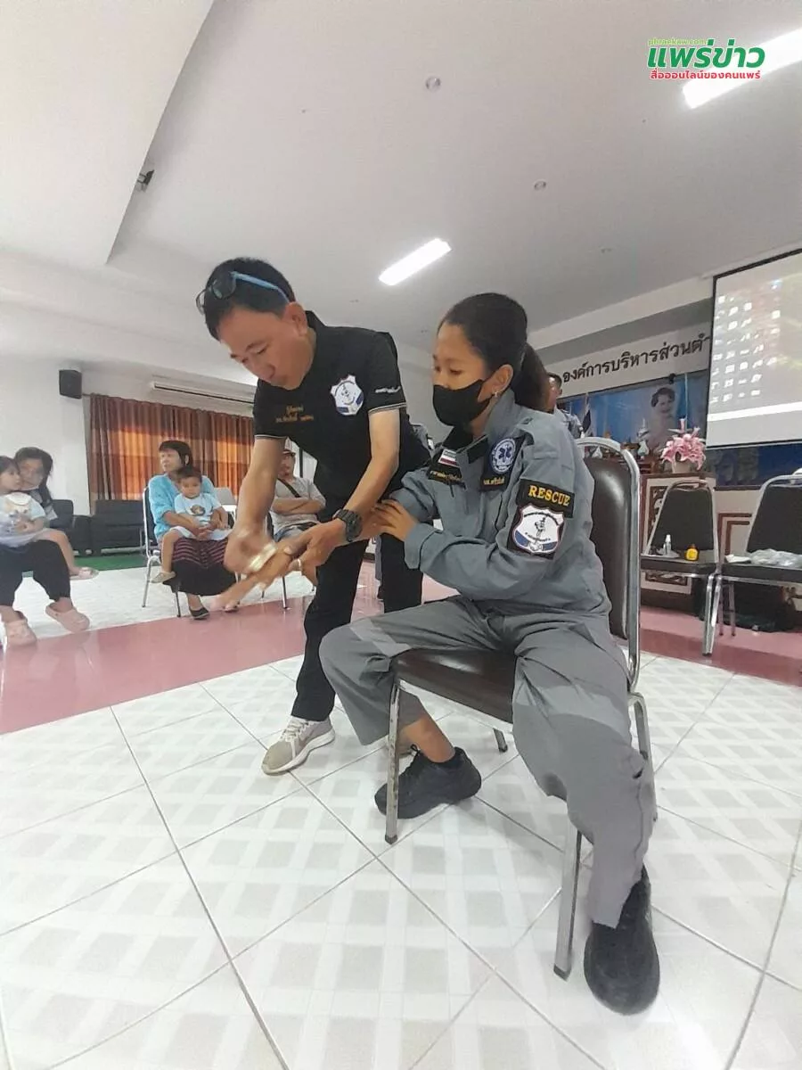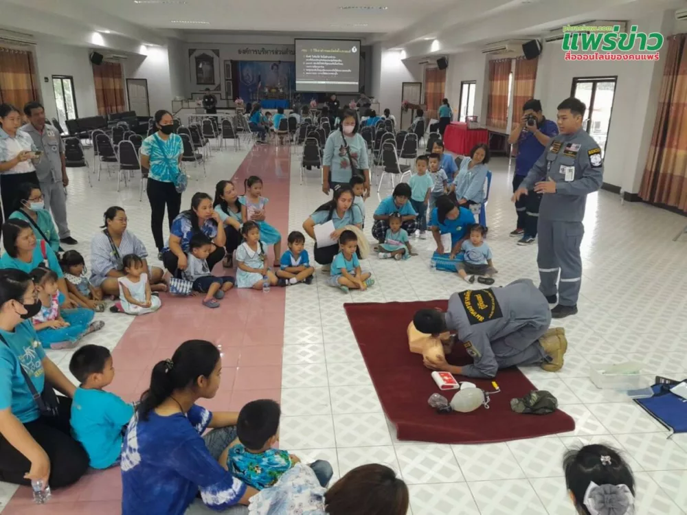 สมาคมอาสาสมัครกู้ภัยจังหวัดแพร่ เข้าฝึกการอบรมโครงการป้องกันความเสี่ยงฯ โรงเรียนอนุบาลองค์การบริหารส่วนตำบลร่องกาศ
