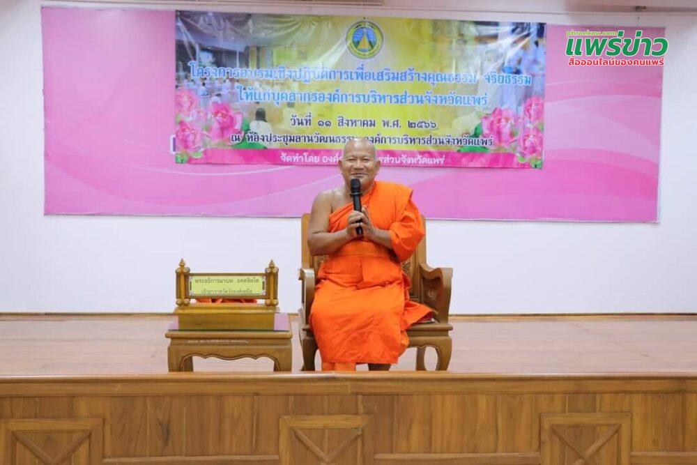 วันที่ 11 สิงหาคม 2566 นายอนุวัธ วงศ์วรรณ นายกองค์การบริหารส่วนจังหวัดแพร่ มอบหมายให้ นายพิภพ ภานะวุฒิพงศ์ รองนายกองค์การบริหารส่วนจังหวัดแพร่เป็นประธานการอบรมเชิงปฏิบัติการเพื่อเสริมสร้างคุณธรรม จริยธรรมให้แก่บุคลากรองค์การบริหารส่วนจังหวัดแพร่ โดยมี ว่าที่ ร.ต.ศุภชัย ทานะขันธ์ ปลัดองค์การบริหารส่วนจังหวัดแพร่ เป็นผู้กล่าวรายงาน พร้อมด้วย นางสาวปาริชาติ หิรัญรัตน์ รองปลัดองค์การบริหารส่วนจังหวัดแพร่ หัวหน้าส่วนราชการ และเจ้าหน้าที่องค์การบริหารส่วนจังหวัดแพร่ เข้าร่วมอบรม ณ ห้องประชุมลานวัฒนธรรม องค์การบริหารส่วนจังหวัดแพร่