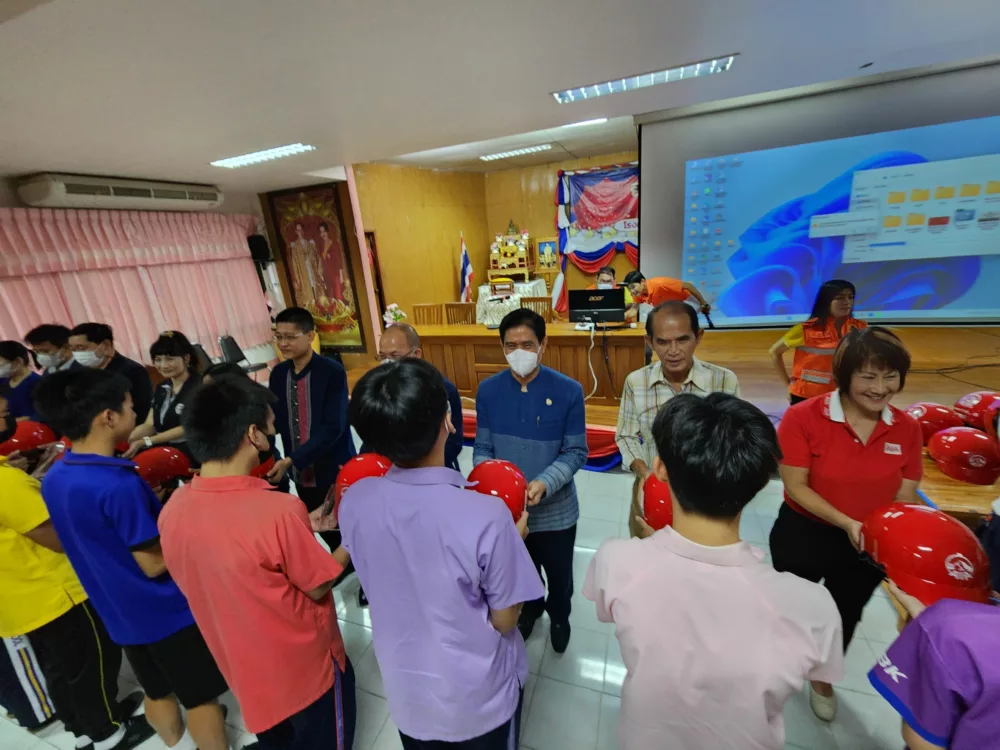 ภายหลังพิธีเปิดมีกิจกรรมมอบหมวกกันน็อคจากสำนักงาน คปภ. จังหวัดแพร่ ให้กับนักเรียนผู้มาร่วมกิจกรรม จำนวน 100 ใบ