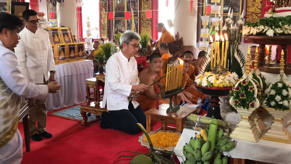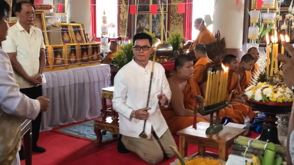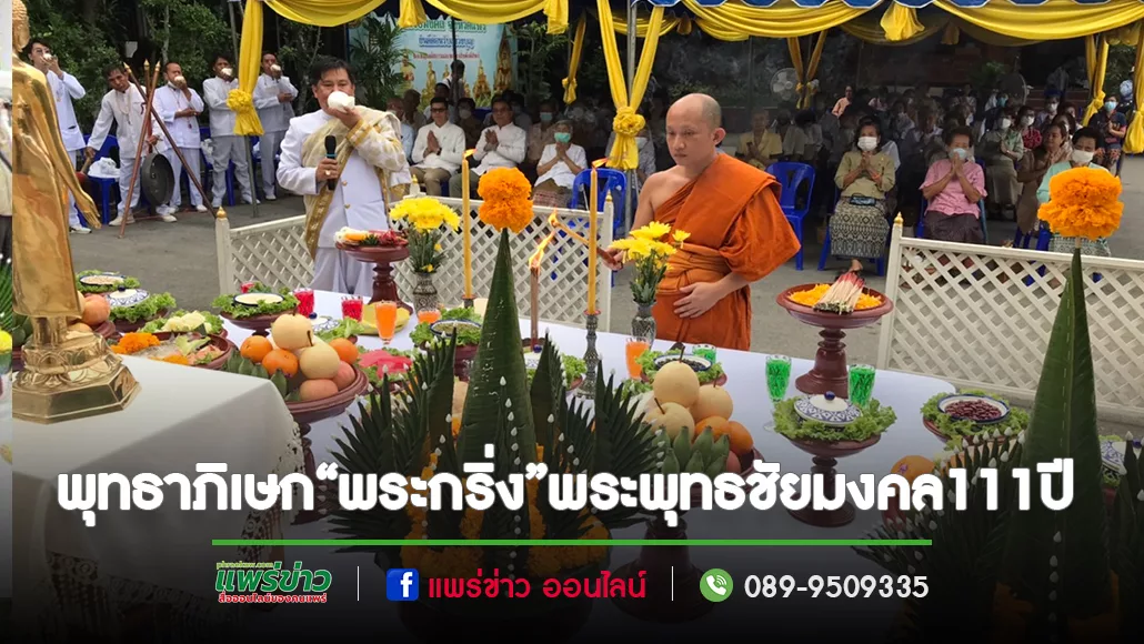 จากนั้นเข้าสู่พิธีทางศาสนาในอุโบสถหลวงพ่อพุทธชัยมงคล มีพระราชเขมากร เจ้าคณะจังหวัดแพร่ ประธานฝ่ายสงฆ์จุดเทียนชัย และพระครูโกศัยเจติยารักษ์ รองเจ้าคณะจังหวัดแพร่ ประธานฝ่ายสงฆ์ดับเทียนชัย โดยมีพระครูพิบูลพัฒนโกศล เจ้าคณะอำเภอเมืองแพร่ พระครูโกศลพิพัฒนคุณ เจ้าคณะอำเภอสูงเม่น พระเถรานุเถระ จำนวน 68 รูป ร่วมประกอบพิธีพุทธาภิเษก โดย พระกริ่ง พระพุทธชัยมงคล กริ่งทองคำ จำนวน 1 องค์ เนื้อเงิน จำนวน 19 องค์ และเนื้อสำริด จำนวน 500 องค์