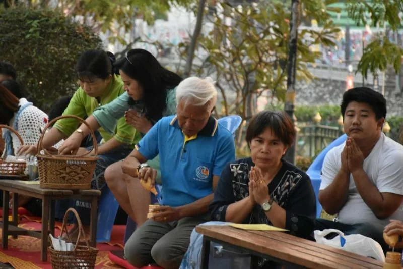 จากนั้นรับฟังคติธรรมจากคณะพระสงฆ์วัดเมธังกราวาส (น้ำคือ) ความว่า มีนิทานหนึ่งเรื่องมาเล่าให้ฟัง มีชายตาบอดคนหนึ่ง เป็นผู้พิการทางสายตาตั้งแต่กำเนิด วันหนึ่งก็สงสัยว่าดวงตะวันเป็นอย่างไร ก็ออกมาถามเพื่อนบ้านๆ ก็ไม่รู้จะอธิบายให้เขาฟังอย่างไร ก็เลยไปหยิบกะละมังและไม้หนึ่งเล่ม ตะวันก็เหมือนกะละมังใบนี้แหล่ะมันกลมๆ เย็นวันนั้นเขาก็ได้ยินเสียงพระตีระฆัง ก็เลยไปบอกกับเพื่อนบ้านว่านี่แหล่ะพระตีตะวันใช่ไหม เพื่อนก็บอกไม่ใช่ งั้นดวงตะวันเป็นอย่างไร เพื่อนก็เลยไปเอาเทียนไขมาหนึ่งเล่มแล้วจุดเพื่อความสว่าง เนี่ยตะวันมันก็มีลักษณะคล้ายๆ เป็นแบบนี้ วันหนึ่งคนตาบอดไปหาของในบ้านคลำไปคลำมาไปเจอขลุ่ยหนึ่งเหลา ก็คิดว่าเนี่ยแหล่ะกำดวงตะวัน ก็วิ่งไปหาเพื่อนบ้าน นี่ฉันเจอดวงตะวัน เพื่อนบ้านก็บอกว่าไม่ใช่ ดวงตะวันไม่สามารถจะหยิบจะจับได้