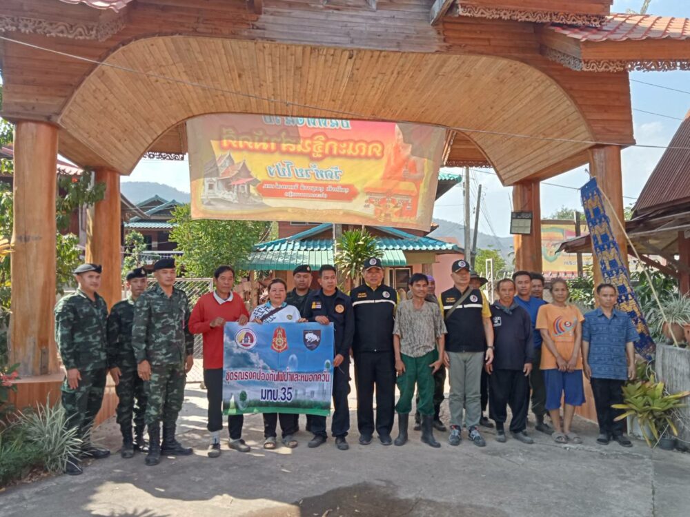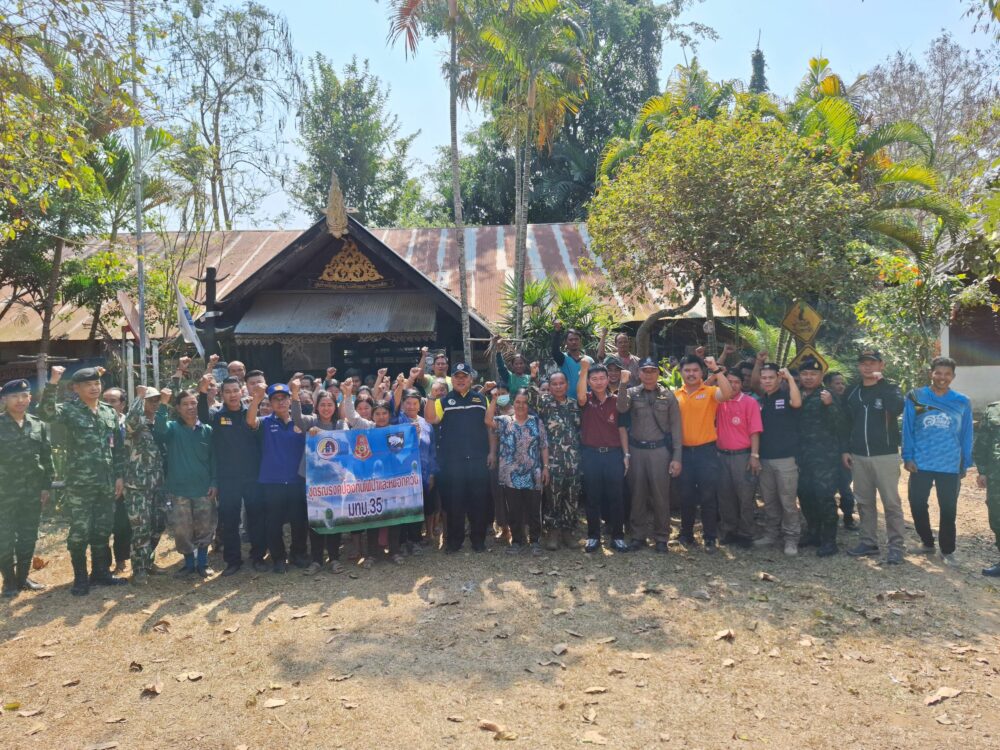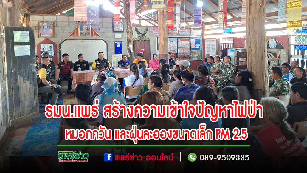 วันที่ 20 กุมภาพันธ์ 2567 เวลา 10.00 – 15.30 น. นายชุติเดช มีจันทร์ ผู้ว่าราชการจังหวัดแพร่ในฐานะผู้อำนวยการ กองอำนวยการรักษาความมั่นคงภายในจังหวัดแพร่ มอบหมายให้ พ.อ. ธำรงศักดิ์ บุญทักษ์ รองผู้อำนวยการ กองอำนวยการรักษาความมั่นคงภายในจังหวัดแพร่ (ท.) และกำลังของหน่วยฯ ร่วมกับ ชุดปฏิบัติการรณรงค์ของกองพันทหารม้าที่ 12 กองพลทหารม้าที่ 1 , อุทยานแห่งชาติแม่ยม ,หน่วยป้องกันและรักษาป่าที่ พ.ร .2 (แม่สอง) , สถานีควบคุมไฟป่าแม่ยม และกำนัน ตำบลสะเอียบ อำเภอสอง ลงพื้นที่เพื่อพบปะชี้แจงการแก้ไขปัญหาไฟป่า หมอกควัน และฝุ่นละอองขนาดเล็ก PM 2.5 รวมถึง ประกาศจังหวัดแพร่ ในการห้ามเผาเด็ดขาด ตั้งแต่วันที่ 15 กุมภาพันธ์ – 30 เมษายน 2567 แก่อาสาสมัครหมู่บ้านเครือข่ายป้องกันไฟป่า , ผู้นำชุมชน และประชาชนในพื้นที่ ตำบลสะเอียบ อำเภอสอง จังหวัดแพร่