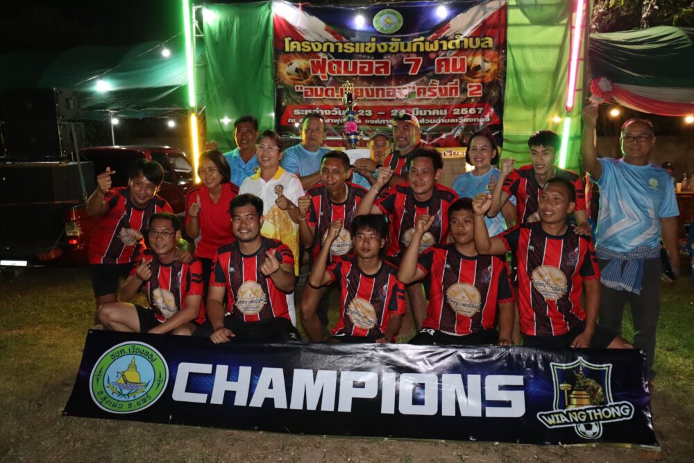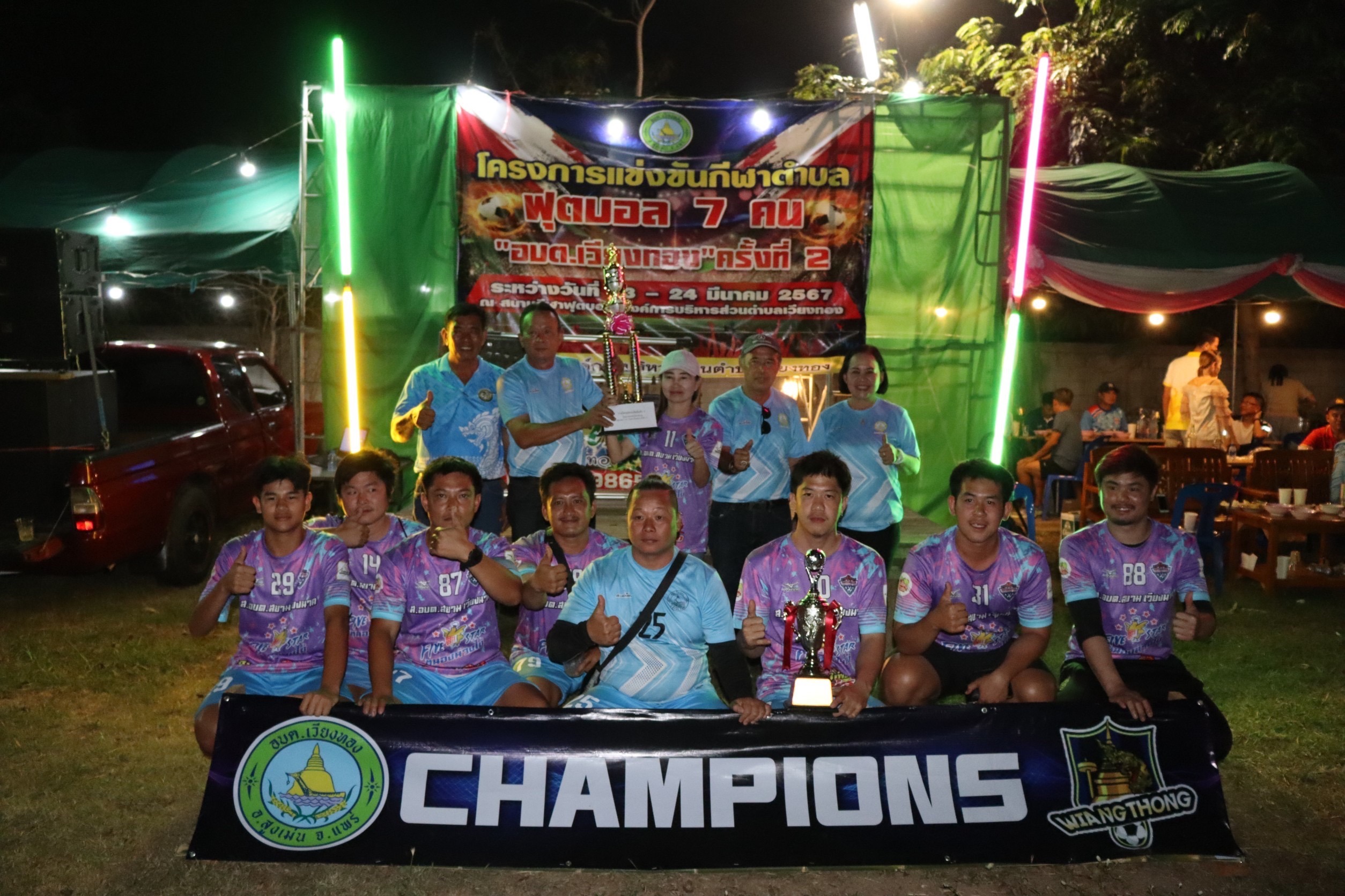 โดยการแข่งขันแข่งออกเป็น 4 สาย มีทีมเข้าร่วมการแข่งขัน จำนวน 12 ทีม ซึ่งผลการแข่งขัน ได้แก่ ทีมซอยประปา By ศุภศิลป์ลายฉลุ หมู่ที่ 6 ได้รับรางวัลชนะเลิศ , ทีมบ้านโฮ่ง ยูไนเต็ด By วัยรุ่น หมู่ที่ 4 ได้รับรางวัลรองชนะเลิศอันดับที่ 1 , ทีมน้องเมอร์ลิน หมู่ที่ 5 ได้รับรางวัลรองชนะเลิศอันดับที่ 2 และทีมน้ำมนต์เดือด By อบต.ม่อน หมู่ที่ 7 ได้รับรางวัลรองชนะเลิศอันดับที่ 3 และยังมีรางวัล FA CUP ได้แก่ ทีมทองเกศ หมู่ที่ 3 , รางวัลดาวซัลโว ได้แก่ นายณัฐพงศ์ อินกาสุข หมู่ที่ 5 และรางวัล ประตูยอดเยี่ยม ได้แก่ นายพีรวิชญ์ ทิพย์สุทธิ์ หมู่ที่ 4 โดยมี นายเสรี เวียงนาค นายกองค์การบริหารส่วนตำบลเวียงทอง และคณะผู้บริหาร ร่วมเป็นเกียรติมอบรางวัลให้แก่นักกีฬาในครั้งนี้