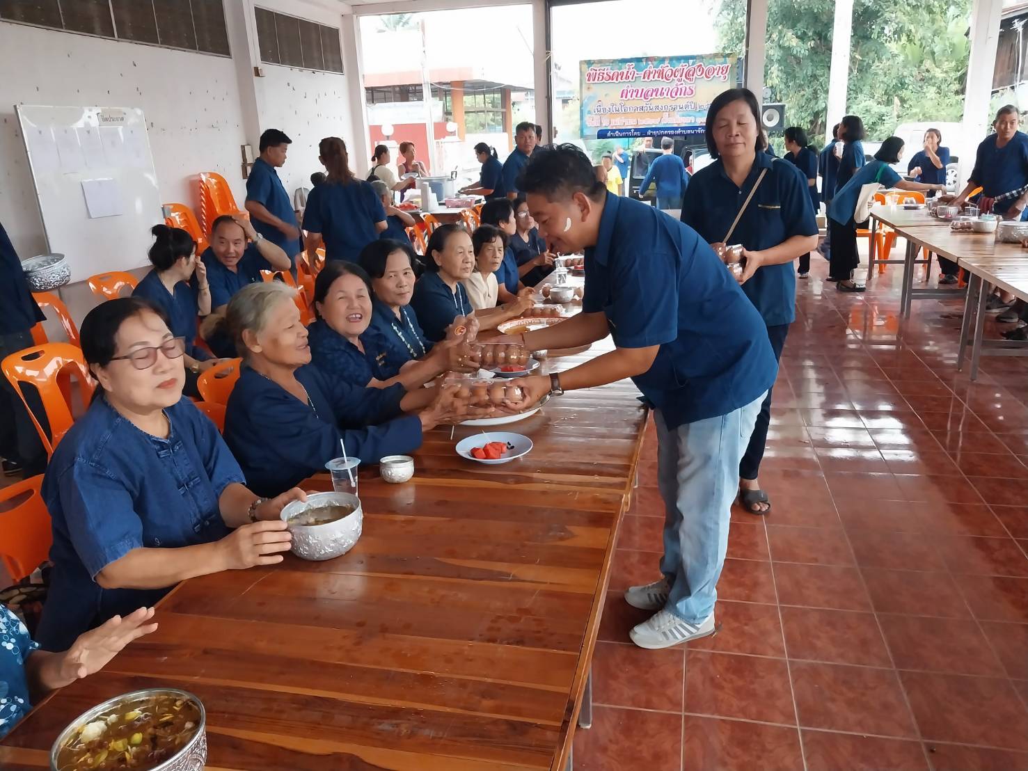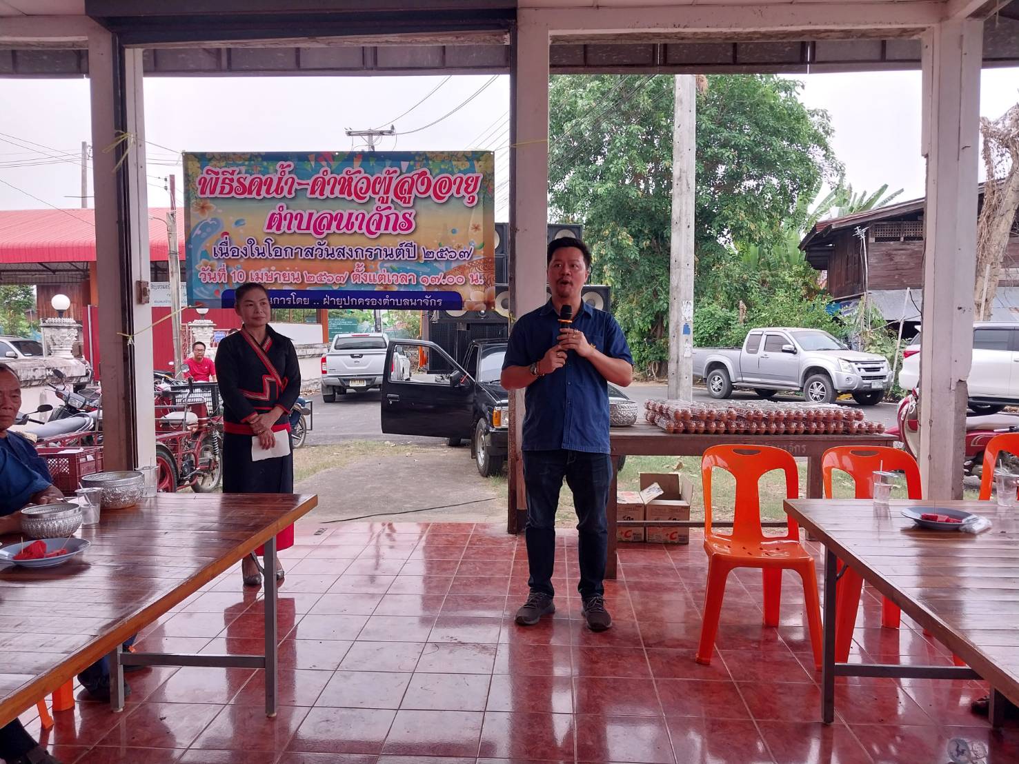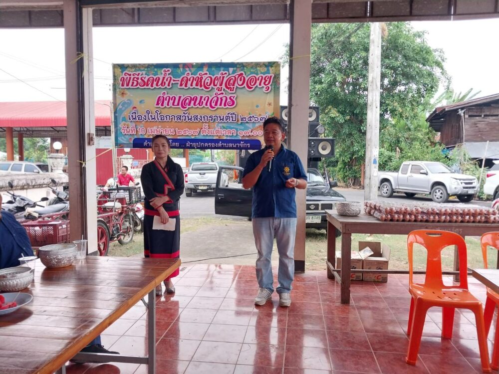 นายสิทธิพร กาศสกูล กำนันตำบลนาจักร อ.เมืองแพร่ จ.แพร่ เผยว่า เมื่อวันพุธที่ 10 เมษายน 2567 เวลา 17.00น. คณะปกครองของตำบลนาจักร ได้จัดพิธีรดน้ำดำหัวขอพรผู้สูงอายุ เนื่องในเทศกาลวันสงกรานต์หรือปี๋ใหม่เมือง ซึ่งปีนี้มีผู้สูงอายุ 60 คน เข้าร่วมงาน โดยฝ่ายปกครองได้ขอขมาและรับพร เพื่อเป็นสิริมงคลในชีวิต หลังจากทำพิธีเสร็จผู้สูงอายุทุกท่านได้รับไข่ไก่กลับบ้านท่านละ 1 แผง พร้อมกับทานอาหารเย็นร่วมกัน ณ ศูนย์พัฒนาเด็กเล็ก หลังเก่า ข้างวัดบ้านนาจักร อ.เมือง จ.แพร่