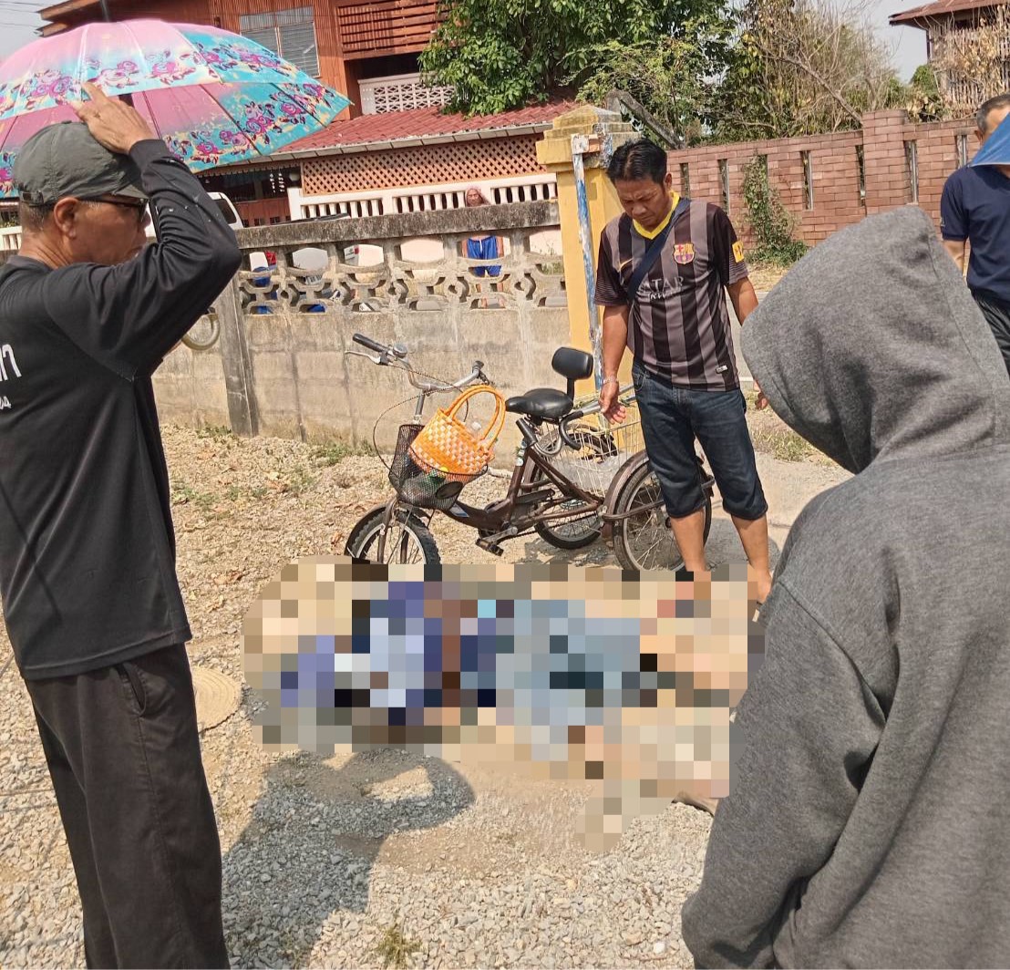 หลังรับแจ้งจึงประสาน หน่วยกู้ภัยแพร่ แพทย์เวร รพ.แพร่ ออกตรวจสอบ เมื่อไปที่เกิดเหตุท่ามกลางแสงแดดร้อนอบ อ้าว พบผู้เสียชีวิตเป็นหญิงสวมผ้าถุงนอนตายหน้ารถจักรยานล้อถีบสำหรัยผู้สูงอายุ ทราบชื่อในเวลาต่อมาคือ นางจันทรา บ่อคำ อายุ 76ปี ชาวบ้านหมู่ 8 ต.เหมืองหม้อ อ.เมืองแพร่ จ.แพร่ จึงบันทึกที่เกิดเหตุเป็นหลักฐาน