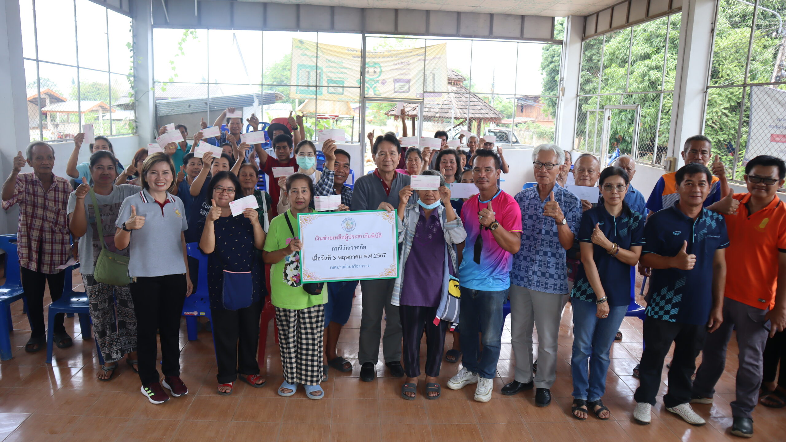 วันศุกร์ที่ 10 พฤษภาคม 2567 นายพิพัฒน์ ซื่อทรงธรรม นายกเทศมนตรีตำบลร้องกวาง พร้อมด้วยคณะผู้บริหาร สมาชิกสภาเทศบาล หัวหน้าส่วนราชการ มอบเงินช่วยเหลือผู้ประสบเหตุวาตภัยในเขตเทศบาลตำบลร้องกวาง เพื่อช่วยเหลือประชาชนที่ได้รับความเดือดร้อนบ้านเรือนเสียหายจากเหตุลมพายุ ฝนฟ้าคะนอง และฝนตกลงมาอย่างหนักในเขตพื้นที่เทศบาลตำบลร้องกวาง ทำให้บ้านเรือนเกิดความเสียหายกว่า 350 หลังคาเรือน โดยทางเทศบาลตำบลร้องกวาง ได้ดำเนินการมอบเงินช่วยเหลือเร่งด่วนแก่ผู้ที่ได้รับความเดือดร้อนครบทุกหลังคาเรือน เพื่อเป็นการบรรเทาความเดือดร้อนจากเหตุวาตภัยที่เกิดขึ้นต่อไป