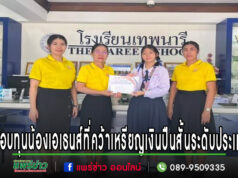 ผอ.รร.เทพนารีมอบทุนการศึกษาน้องเอเธนส์ที่คว้ารางวัลเหรียญเงินปืนสั้นระดับประเทศ