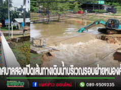เทศบาลตำบลสองห่วงน้ำท่วมบ้านประชาชนเปิดเส้นทางเดินน้ำในบริเวณรอบฝายหนองคุ้ม