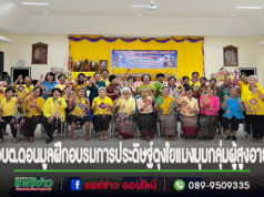 อบต.ดอนมูลฝึกอบรมการประดิษฐ์ตุงใยแมงมุมกลุ่มผู้สูงอายุ