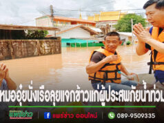 (มีคลิป) หมออุ๋ย นั่งเรือลุยแจกข้าวผู้ประสบภัยน้ำท่วมกับรองนายกอบจ.แพร่