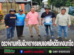 คณะผู้บริหารพร้อมปลัดอบต.เวียงทองลงพื้นที่ตรวจงานโครงการเสริมผิวจราจรแลบแอสฟัลต์ติกคอนกรีต