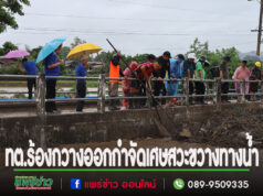 เทศบาลตำบลร้องกวางออกดำเนินการกำจัดเศษสวะขวางทางน้ำ