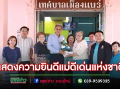 วันอังคารที่ 15 สิงหาคม 2566 เวลา 12.00 น. นายโชคชัย พนมขวัญ นายกเทศมนตรีเมืองแพร่ พร้อมด้วยคณะผู้บริหาร สมาชิกสภาเทศบาลเมืองแพร่ ปลัดเทศบาลเมืองแพร่ หัวหน้าส่วนราชการ ผู้อำนวยการสถานศึกษาและคณะผู้บริหารสถานศึกษาในสังกัดเทศบาลเมืองแพร่ และพนักงานเทศบาล ร่วมแสดงความยินดีกับนางพยอม เดชนาลักษณ์ เจ้าหน้าที่ศูนย์อาสาสมัครป้องกันภัยฝ่ายพลเรือนเทศบาลเมืองแพร่ในโอกาสได้รับการคัดเลือกเป็นแม่ดีเด่นแห่งชาติ ประจำปี 2566 ประเภท แม่ผู้เป็นอาสาสมัครและแม่ของลูกที่เป็นอาสาสมัคร จากสภาสังคมสงเคราะห์แห่งประเทศไทย...