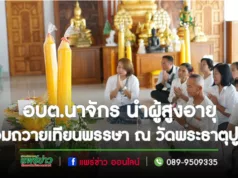 อบต.นาจักร นำผู้สูงอายุ สืบสานประเพณีโบราณ ร่วมถวายเทียนพรรษา ณ วัดพระธาตุปูแจ