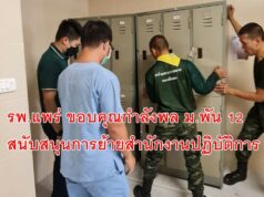 รพ.แพร่ ขอบคุณกำลังพล ม.พัน 12 สนับสนุนการย้ายสำนักงานปฏิบัติการ