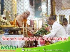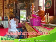 นายกสำราญฯนำคณะอบต.น้ำชำ กำนัน-ผู้ใหญ่บ้าน ถวายเทียนพรรษา