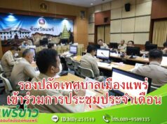 เทศบาลเมืองแพร่ เข้าร่วมการประชุมประจำเดือนนายอำเภอ หัวหน้าส่วนราชการ รัฐวิสาหกิจ ในสังกัดกระทรวงมหาดไทย