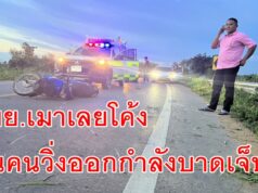 คลิปกล้องหน้ารถจับภาพ จยย.เมาเลยโค้งชนคนวิ่งออกกำลังบาดเจ็บคู่