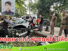 (มีคลิป) 2 หนุ่มเพื่อนสนิทควบเก๋งพุงชนต้นไม้ทางลงห้วยขมิ้นดับคู่