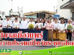 เทศบาลเมืองแพร่ ร่วมงานประเพณีไหว้พระพุทธโกศัยศิริชัยมหาศากยมุนี พระคู่บ้านคู่เมืองแพร่ และงานส่งเสริมพระพุทธศาสนาเนื่องในเทศกาลวันวิสาขบูชา