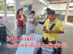อบต.นาจักรออกฉีดวัคซีนป้องกันโรคพิษสุนัขบ้า