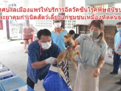 เทศบาลเมืองแพร่ ให้บริการฉีดวัคซีนโรคพิษสุนัขบ้าและยาคุมกำเนิดสัตว์เลี้ยงแก่ชุมชนเหมืองหิตต้นธง