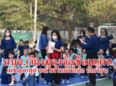 อบต.เวียงทองจัดซ้อมแผนเผชิญเหตุการณ์ไฟไหม้ให้เด็ก นักเรียน