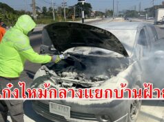 (มีคลิป) ระทึกไฟลุกไหม้รถเก๋งกลางแยกบ้านฝ้ายพลเมืองดีเปิดกระโปรงฉีดน้ำยาดับเพลิง