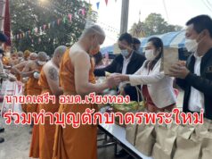 นายกเสรีฯ อบต.เวียงทอง ร่วมทำบุณตักบาตรพระใหม่ ที่บรรพชาอุปสมบท 99 รูป ถวายพระพรชัยมงคล แด่สมเด็จพระเจ้าลูกเธอ