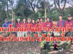 อาสาสมัครป้องกันไฟป่าและหมอกควันบ้านแสนทองหมู่ 10 ต.เวียงต้า จัดทำเสวียนเก็บใบไม้ลดเชื้อเพลิง