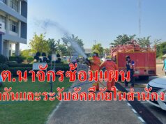 อบต.นาจักรซ้อมแผนป้องกันและระงับอัคคีภัยในสำนักงาน