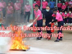 อบต.นาจักร ฝึกซ้อมพร้อมรับภัยพิบัติให้นักเรียน