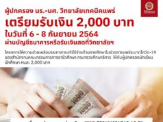 ด่วน!วิทยาลัยเทคนิคแพร่กำหนดจ่ายเงินเยียวยา 2 พัน ระหว่างวันที่ 6-8 กันยายน 2564..