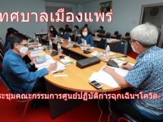 เทศบาลเมืองแพร่ ประชุมคณะกรรมการศูนย์ปฏิบัติการฉุกเฉินฯโควิด-19 ครั้งที่ 6/2564