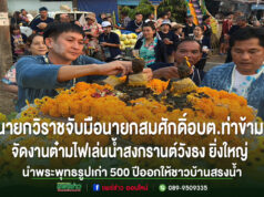 นายกวิราชจับมือนายกสมศักดิ์อบต.ท่าข้ามจัดงานต๋ามไฟเล่นน้ำสงกรานต์วังธงยิ่งใหญ่ พร้อมนำพระพุทธรูปเก่า 500 ปีออกสรงน้ำเพื่อเป็นสิริมงคล