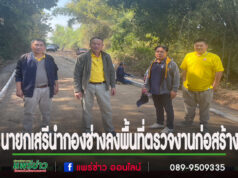 นายกเสรีนำทีมกองช่างลงพื้นที่ตรวจติดตามงานก่อสร้างถนนคอนกรีตเสริมเหล็ก