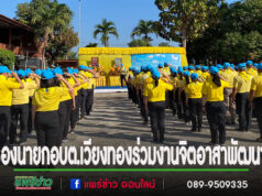 นายกเสรี นำคณะผู้บริหาร,ชมรมกำนัน-ผู้ใหญ่บ้านตำบลเวียงทอง และพนักงาน อบต.เวียงทอง ร่วมงานตามรอยพระยุคลบาทยาตรา