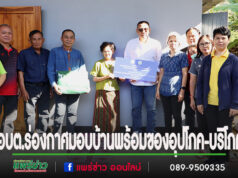 นายกสมคิดนำคณะอบต.ร่องกาศ ร่วมมอบบ้านพร้อมของอุปโภค-บริโภค