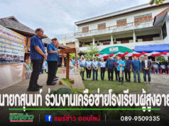 สุนนท์ นายกอบต.นาจักรพร้อมด้วยผู้บริหารนำตัวแทนนักเรียนโรงเรียนผู้สูงอายุร่วมกิจกรรมของเครือข่ายโรงเรียนผู้สูงอายุจังหวัดแพร่