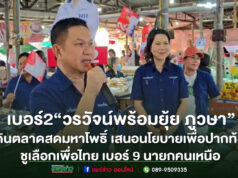 เบอร์ 2 “วรวัจน์ พร้อม ยุ้ย ภูวษา”เดินตลาดสดมหาโพธิ์ อ้อนขอแรงใจพ่อค้าแม่ค้า พร้อมเสนอนโยบายเพื่อปากท้อง ชูเลือกเพื่อไทย เบอร์ 9 นายกคนเหนือ