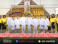 นายกเสรีพร้อมด้วยคณะผู้บริหารหัวหน้าส่วนราชการ และพนักงานอบต.เวียงทอง เข้าร่วมพิธีเฉลิมพระเกียรติพระบาทสมเด็จพระเจ้าอยู่หัว