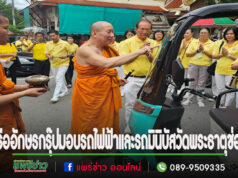อ.นิคม หมดราคี ประธานสถาบันในเครืออักษรกรุ๊ป มอบรถไฟฟ้าและรถมินิบัสให้วัดพระธาตุช่อแฮ