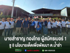 นายสำราญ กองโกย ผู้สมัครนายกอบต.น้ำชำเบอร์ 1 ชู 8 นโยบายเด็ดอ้อนชาวต.น้ำชำเข้าคูหากาเบอร์ 1 เป็นนายกอบต.น้ำชำ